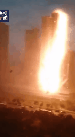 沈阳某小区一高压电线遭雷击起火 画面如同科幻大片