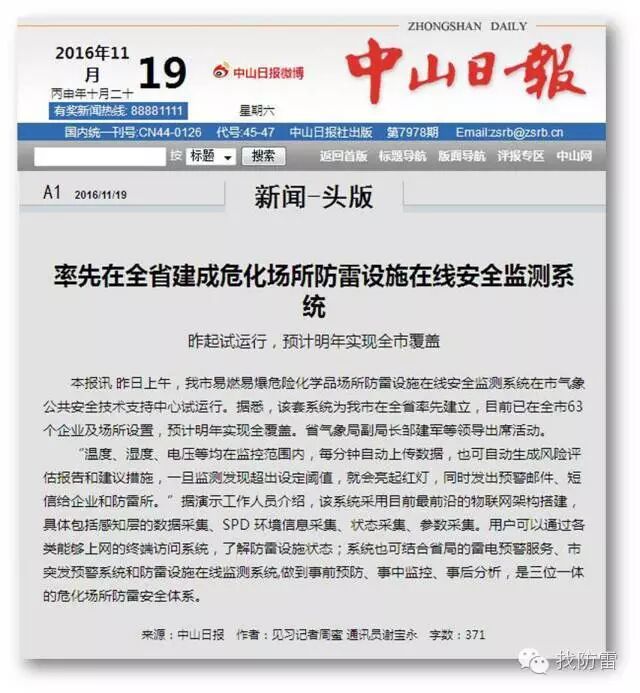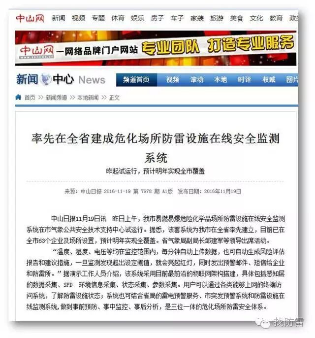 热烈祝贺科威股份雷电安全在线监测系统在中山市易燃易爆危化场所试运行
