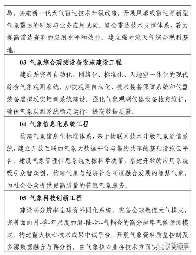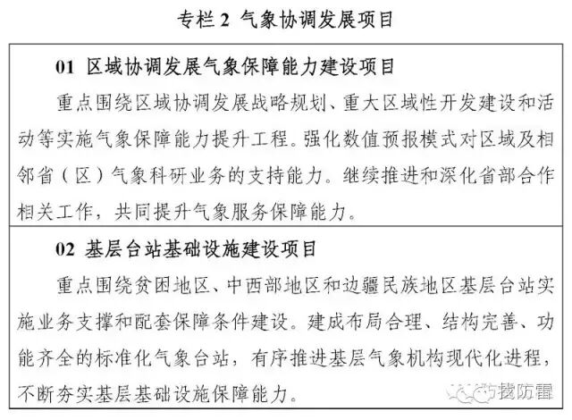 国家级气象机构围绕气象核心技术突破提升气象业务综合实力, 地方气象机构注重加强地区特色的气象服务保障能力建设。夯实 基层发展基础,重点推进基层综合气象业务并强化实时监测和临 近预警能力建设,优化基层气象机构设臵和业务布局。着力加大 对边远贫困地区、边疆民族地区和革命老区气象事业发展的支持 力度。深化内地和港澳、大陆和台湾地区气象信息共享、气象科 技发展、气象灾害联防合作发展。