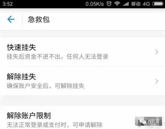 目前支付宝还未对此进行回应,如果突然收到支付宝发来的验证码短信,提示有人尝试登录你的支付宝账号,大家可以立刻进入支付宝客户端,点击【我的】→【设置】→【安全中心】→【急救包】→【快速挂失】。