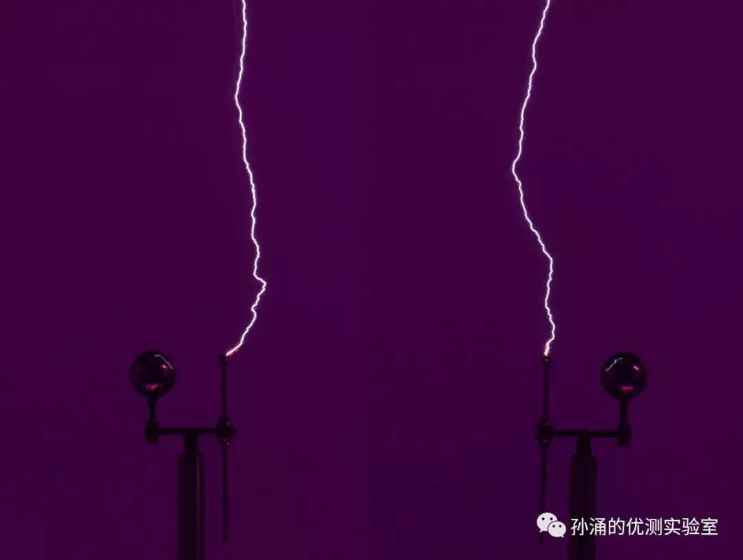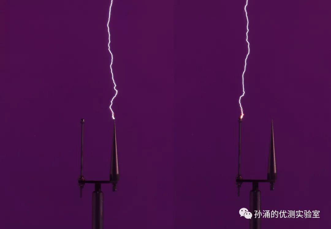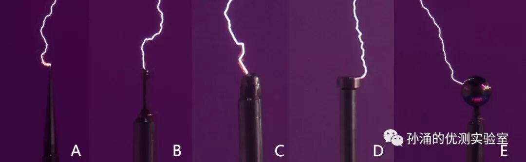 无论左右两组试验,曲率半径30mm的针头均不接闪,不接闪概率达到了100%。所以在直击雷防护技术中有一条:将突出的旗杆或栏杆柱顶端做成圆球状可以降低雷击风险!