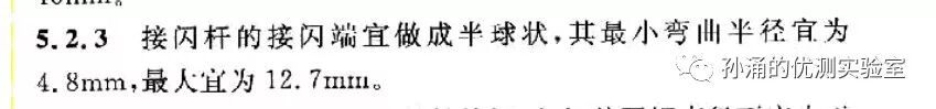 从以上实验结论角度得出的几个结论,侧面验证了标准中要求接闪杆曲率半径为4.8-12.7mm的要求。